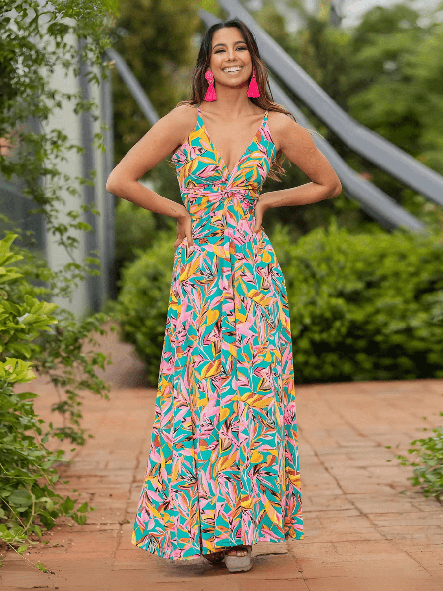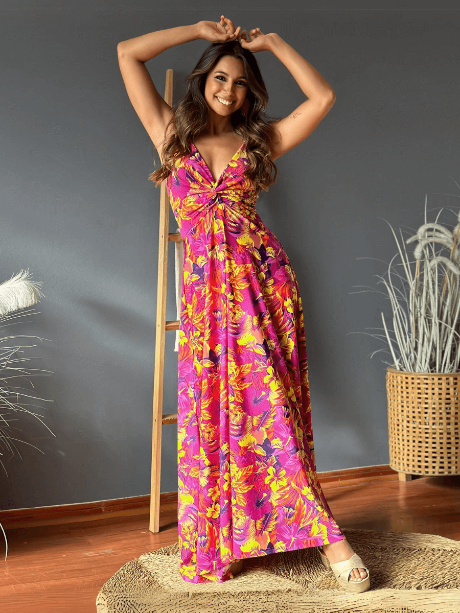 Cynthia Floral V-Neck Boho Maxi Dress - Pink