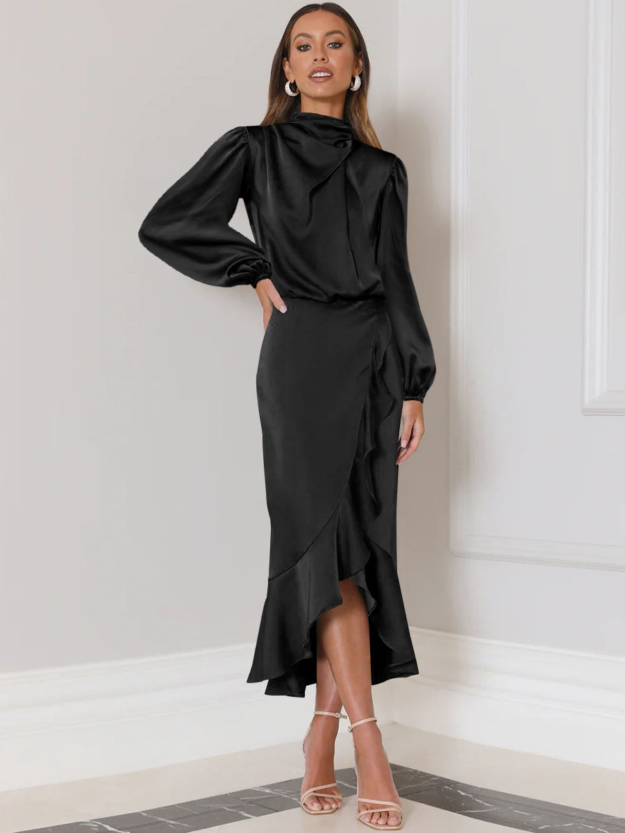 Vianne One-Shoulder Satin Midi Dress - Emerald
