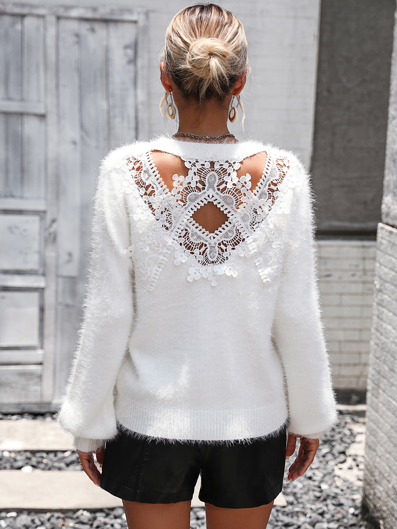 Pretty Petals Lace Floral Pullover Sweater - White