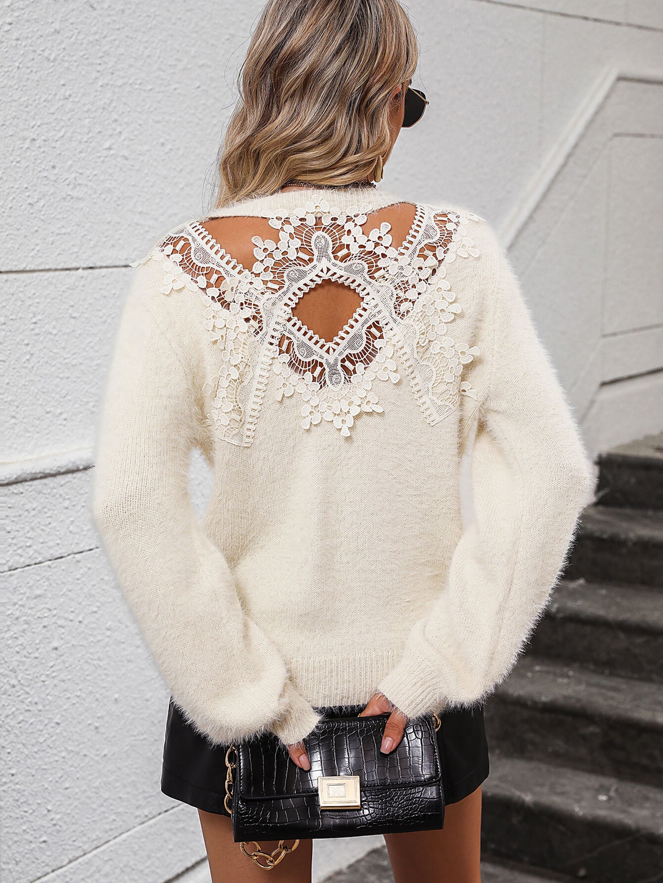 Pretty Petals Lace Floral Pullover Sweater - Cream