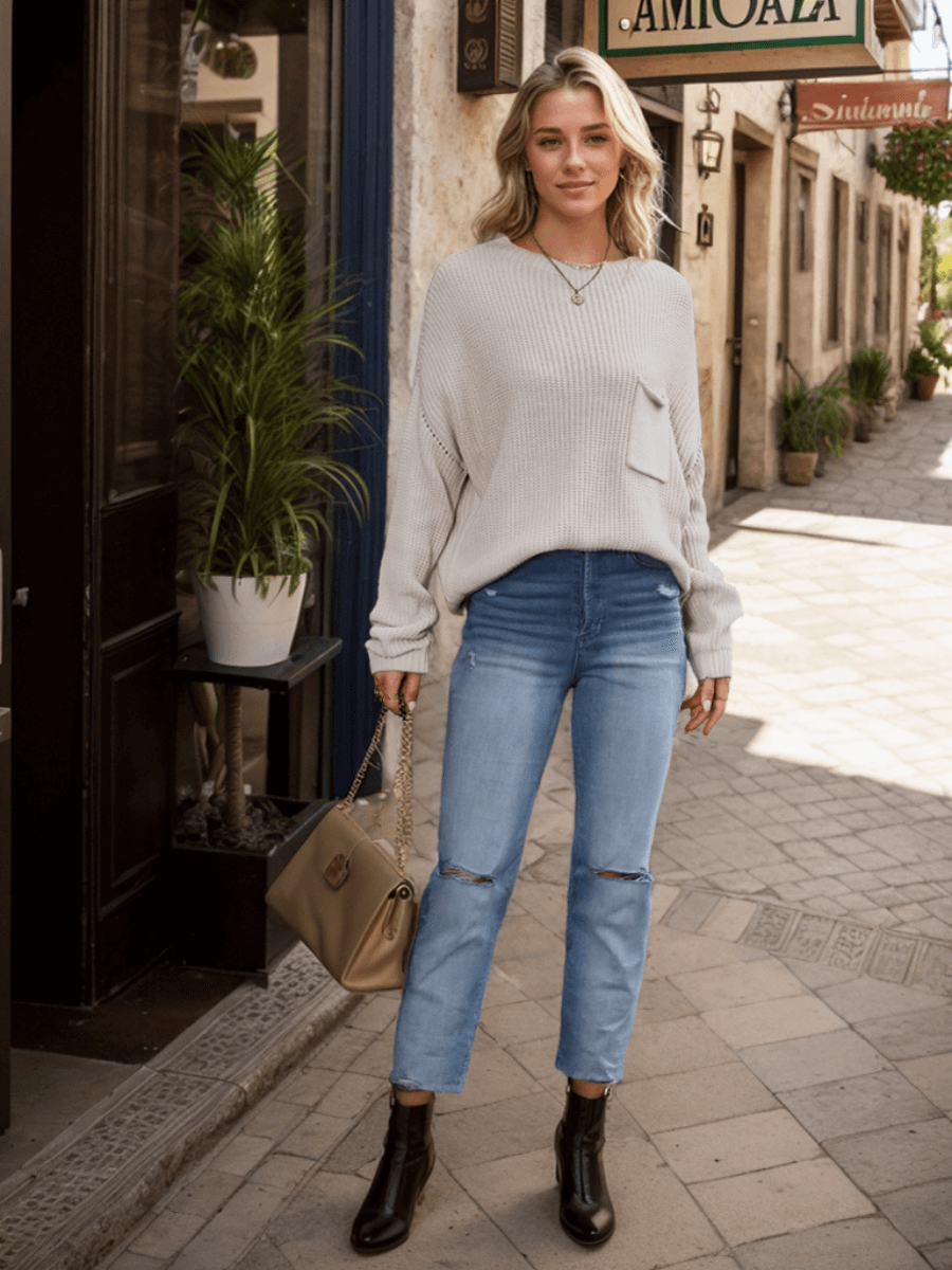 Alemery | Geometric Pattern Ripped Side Hem Sweater - Cream