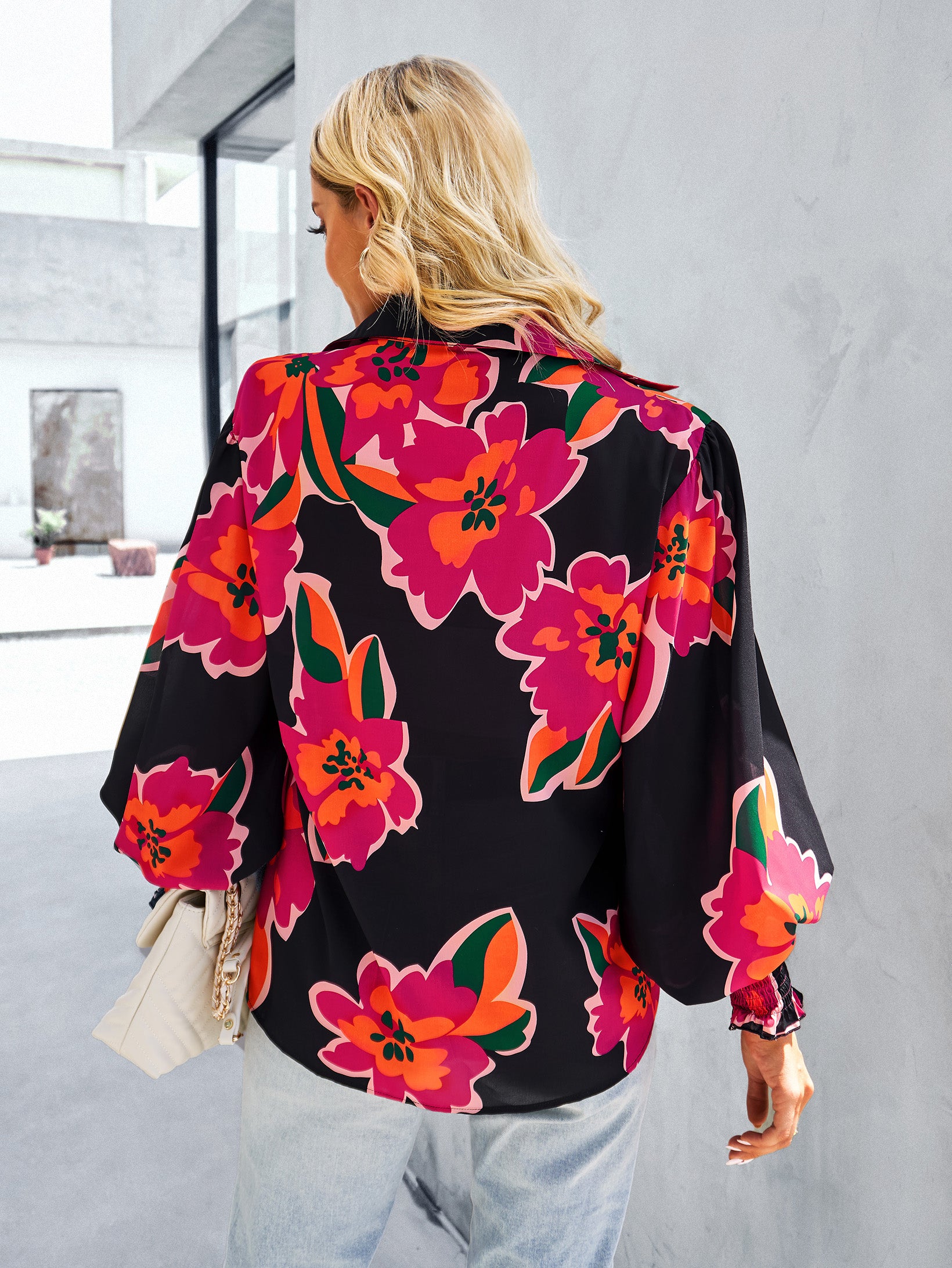 Our Fleetwood Blouse features a long puff sleeve with button detailing. mega floral pattern all over the garment. centre-front buttons. and a collar. This garment is slightly sheer. no lining and no stretch throughout the garment. Pair it with white high waisted shorts and perfectly with our designer heels for a vintage elegant outfit.